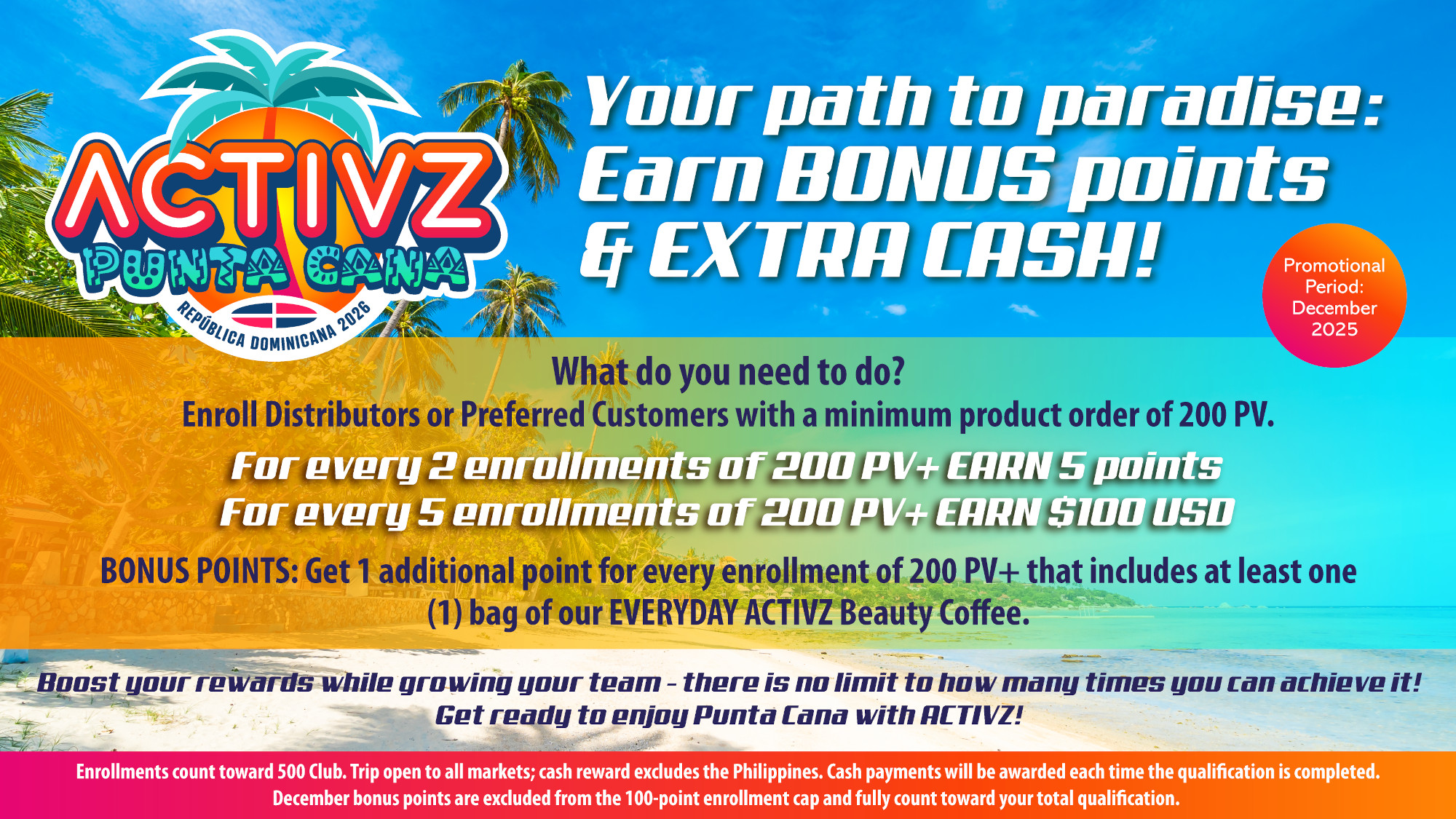 Enroll New Distributors or Preferred Customers with a minimum of 100 PV+